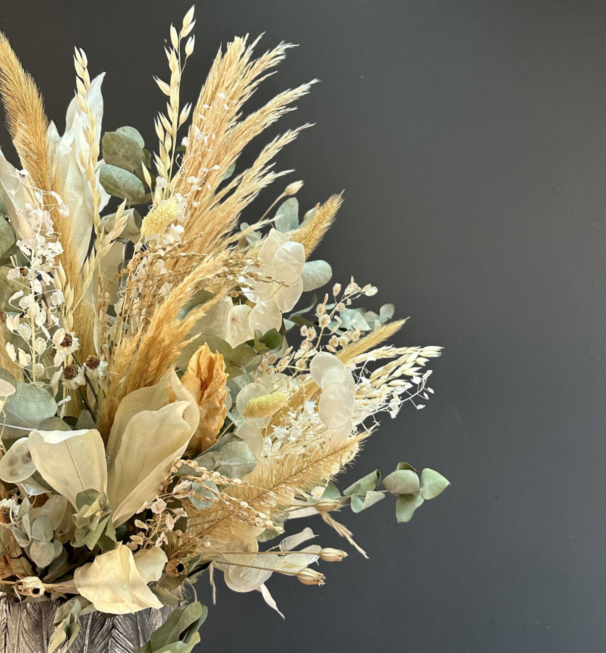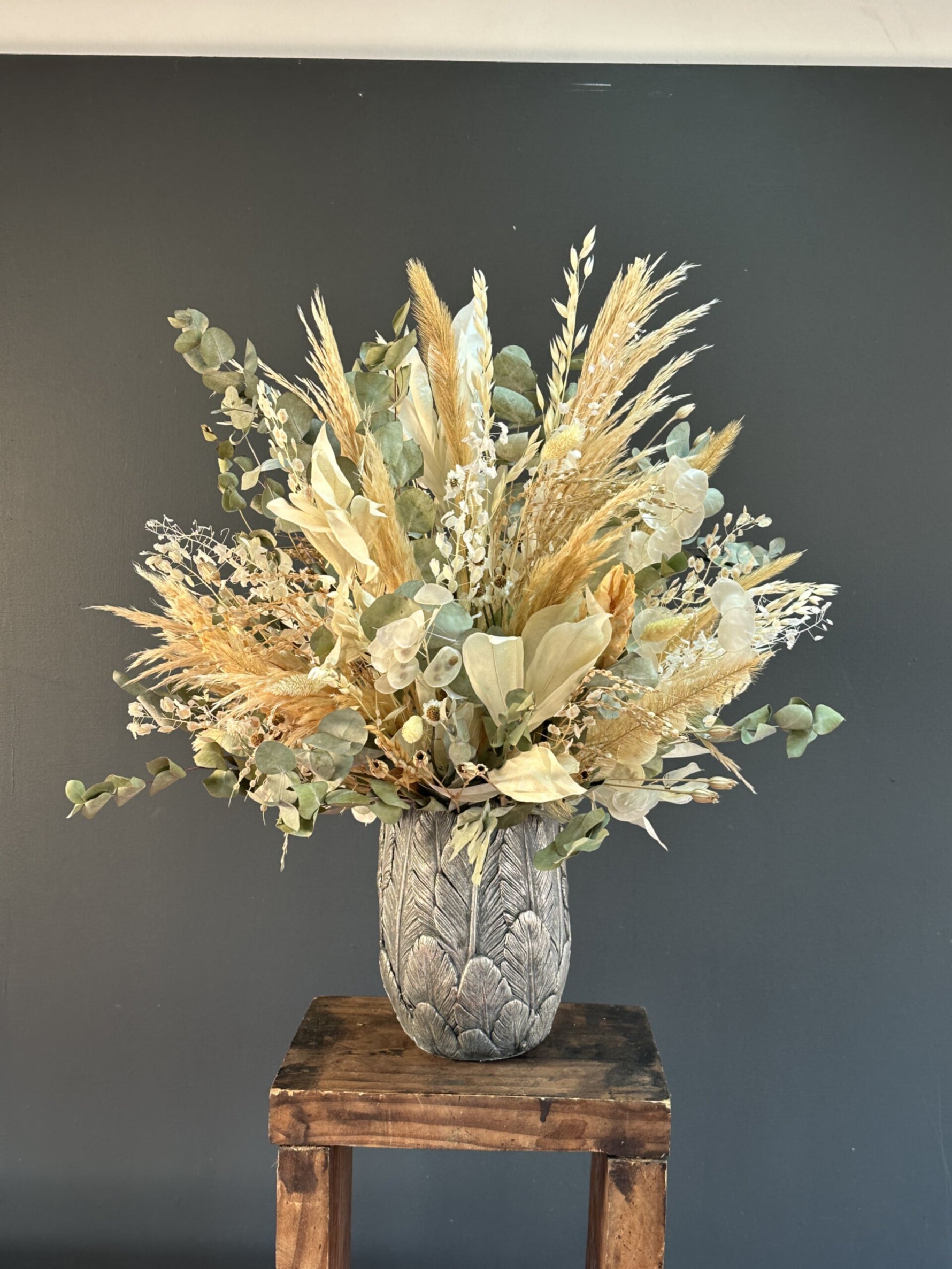 Precio unitario / porFlorero con flores secas y preservada tamaño M, tonos rosados