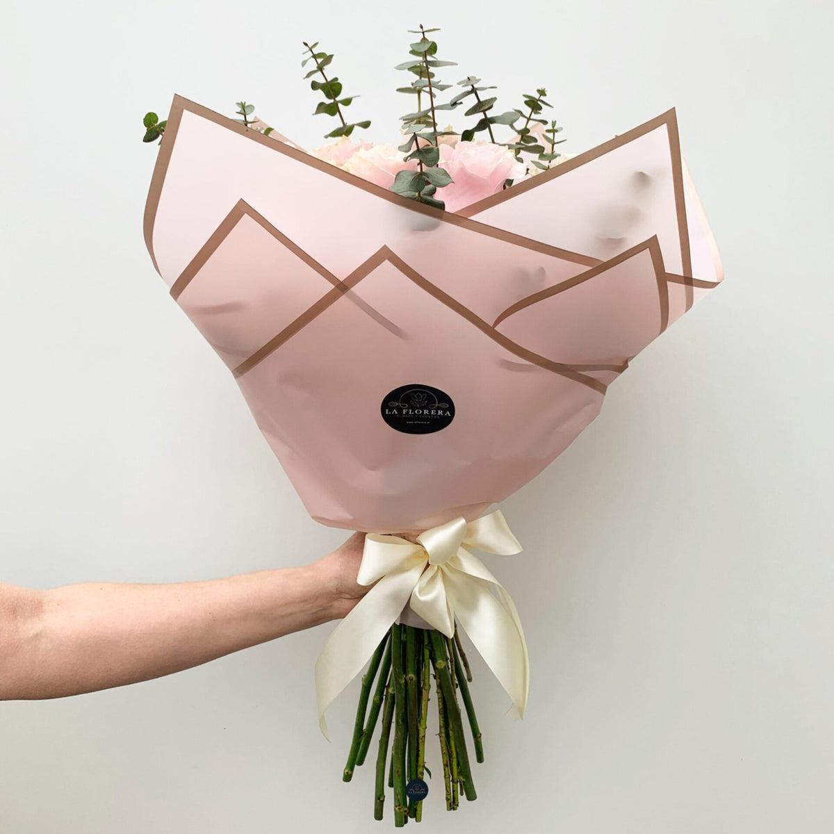 Precio unitario / porRamo de 12 Rosas rosadas con Eucalipto