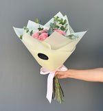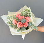 Precio unitario / porRamo de 6 Rosas rosadas con Eucalipto