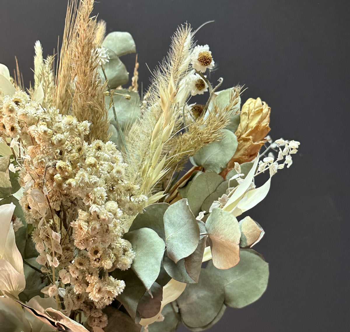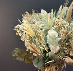 Precio unitario / porFlorero con flores secas y preservada tamaño M tonos blancos.