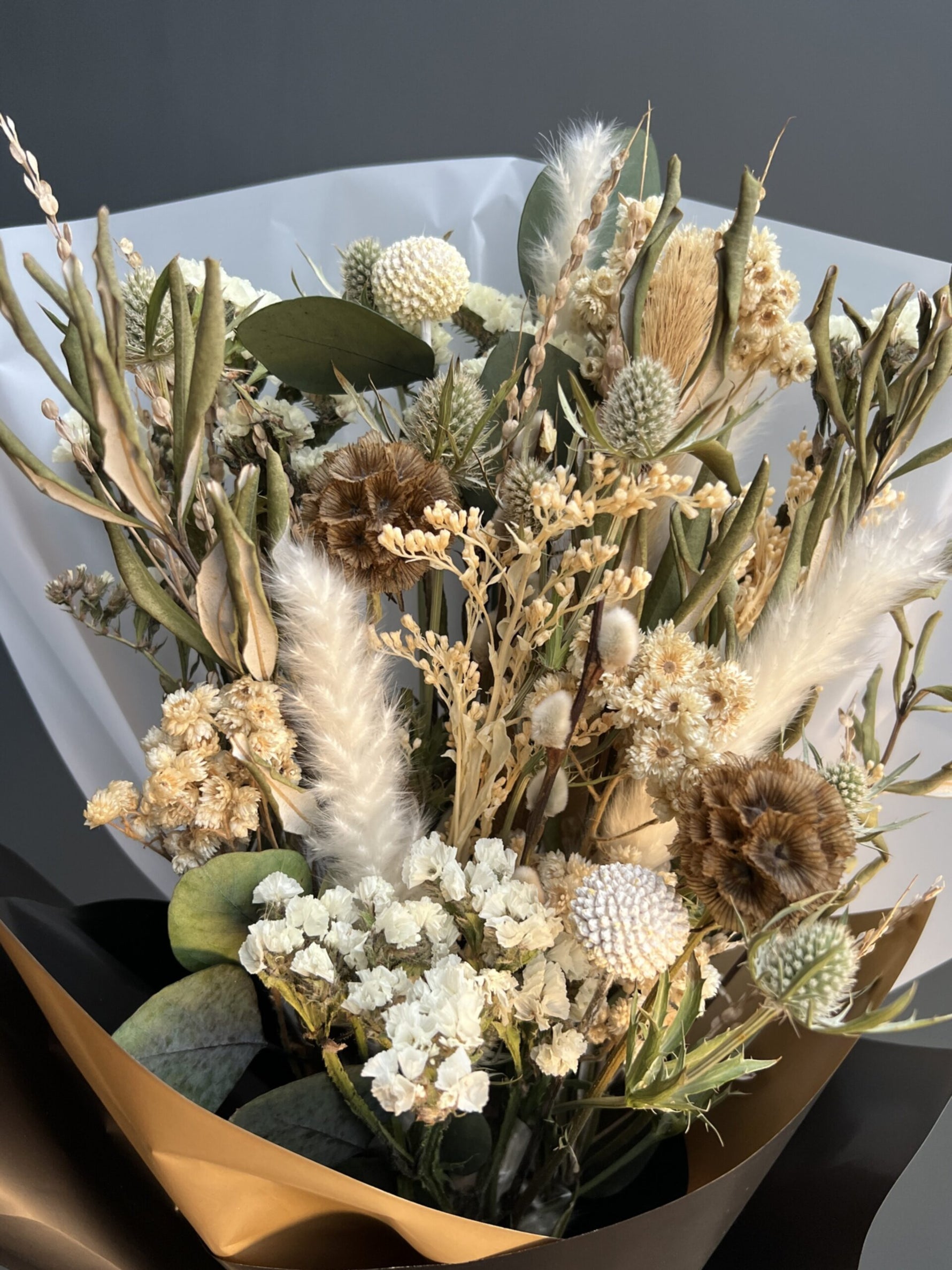 Ramo mixto con flores secas y preservadas, tamaño mediano