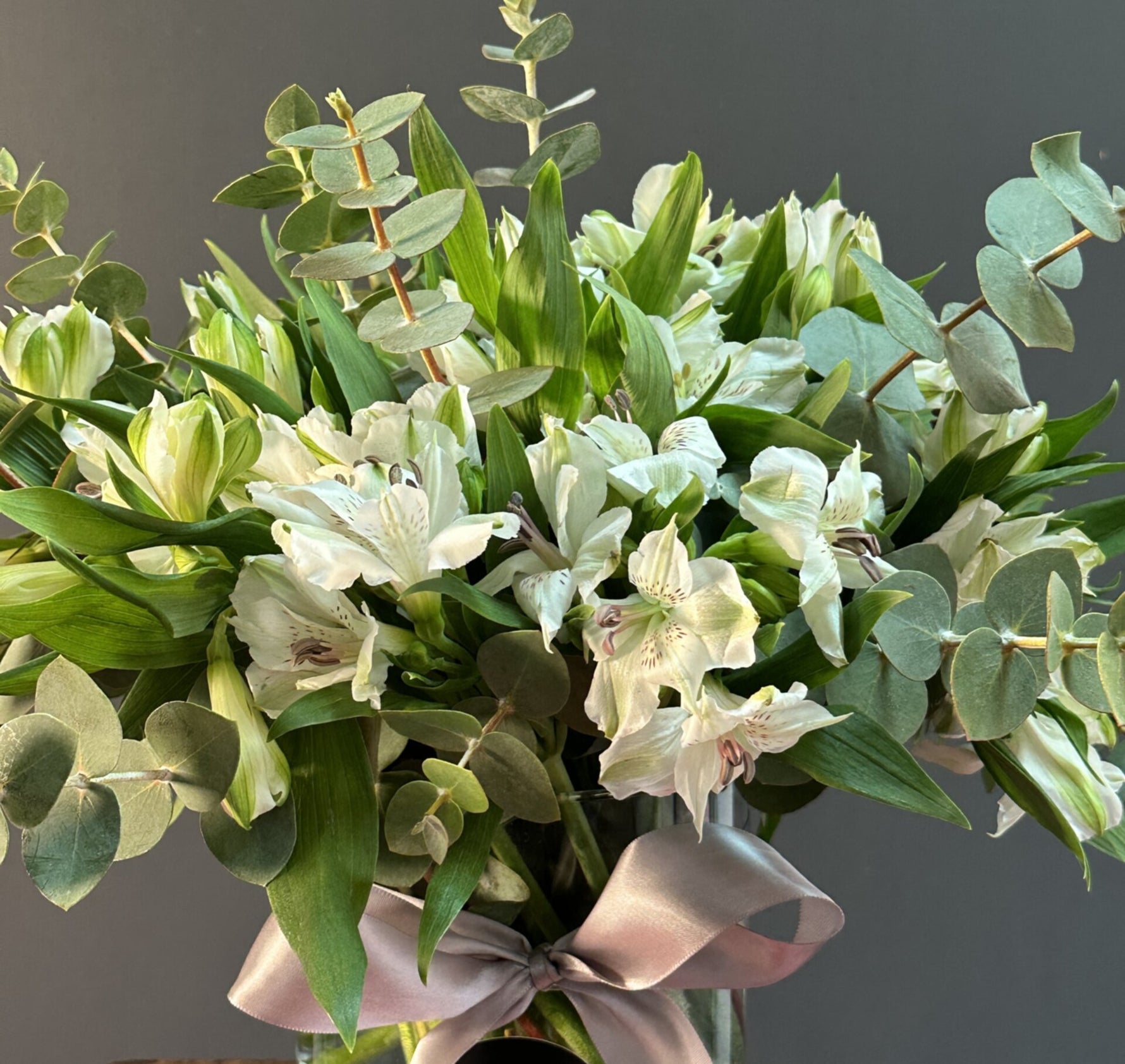 FLORERO ALSTROEMERIAS BLANCAS Y FOLLAJES VERDES