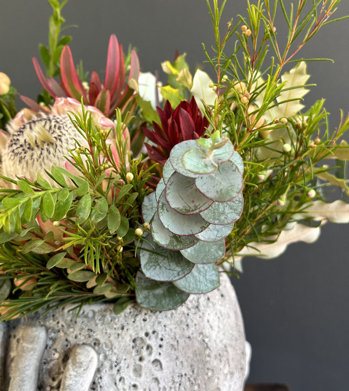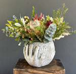 Precio unitario / porMaceta diseño mano, con mix de flores de proteas, leucadendros y follajes