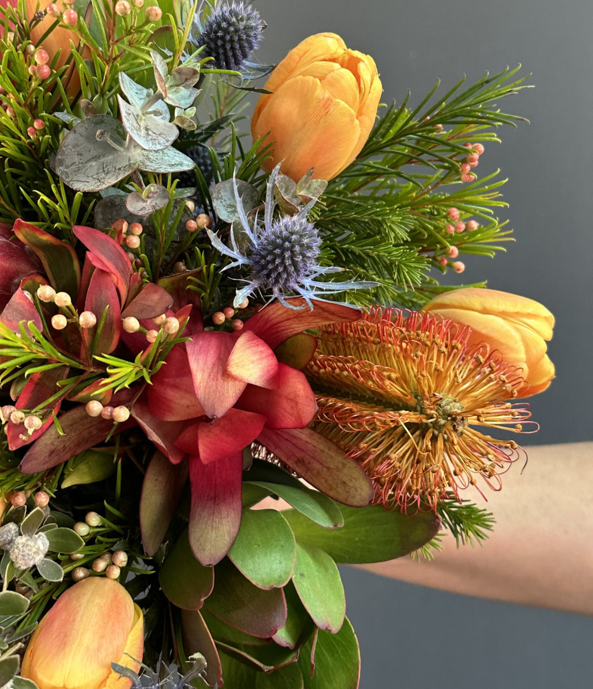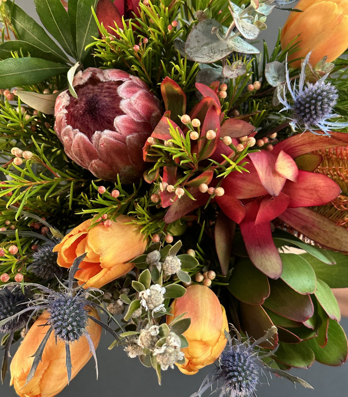 Precio unitario / porRamo de Novia con proteas y tulipanes con follajes verdes
