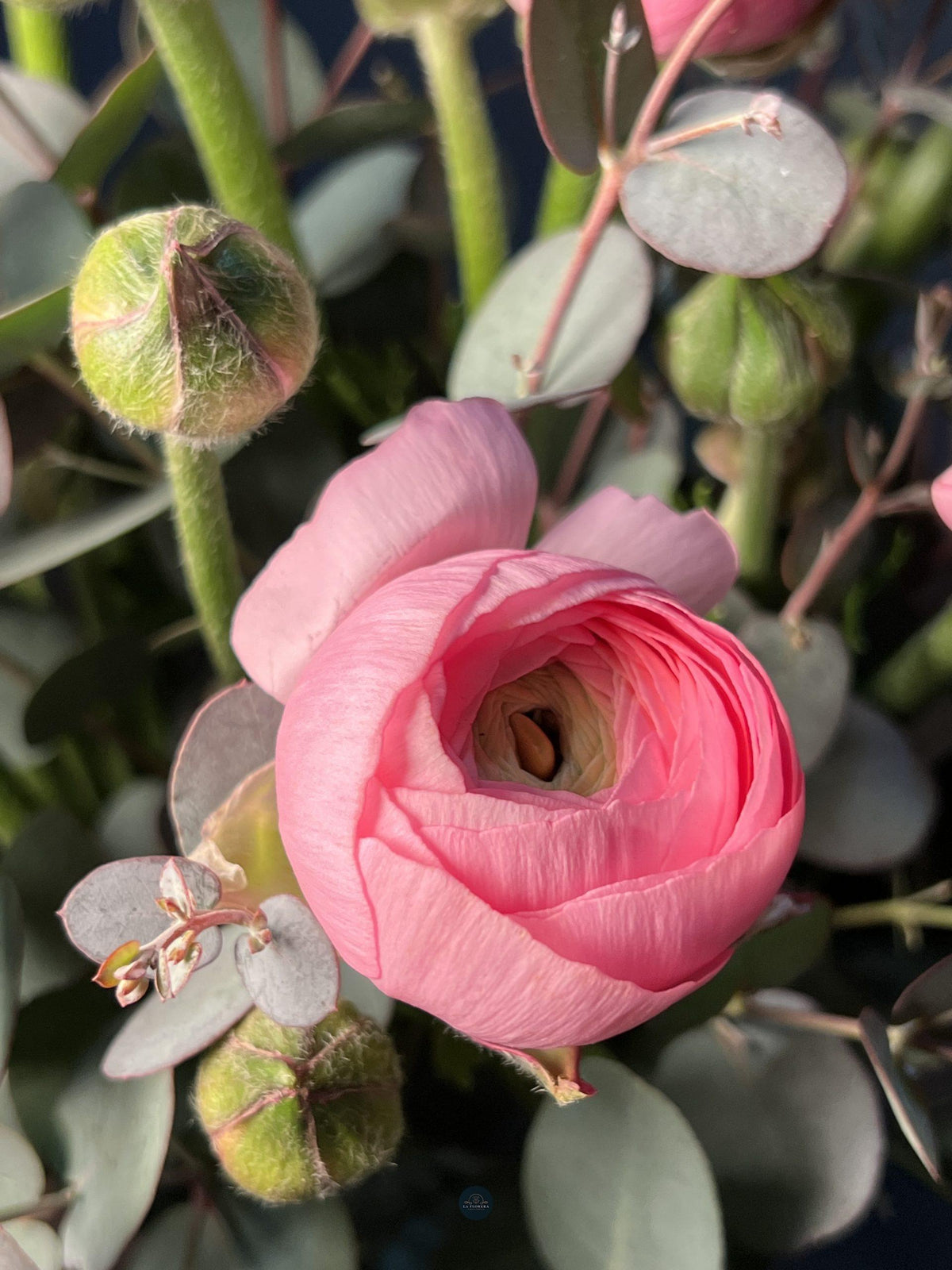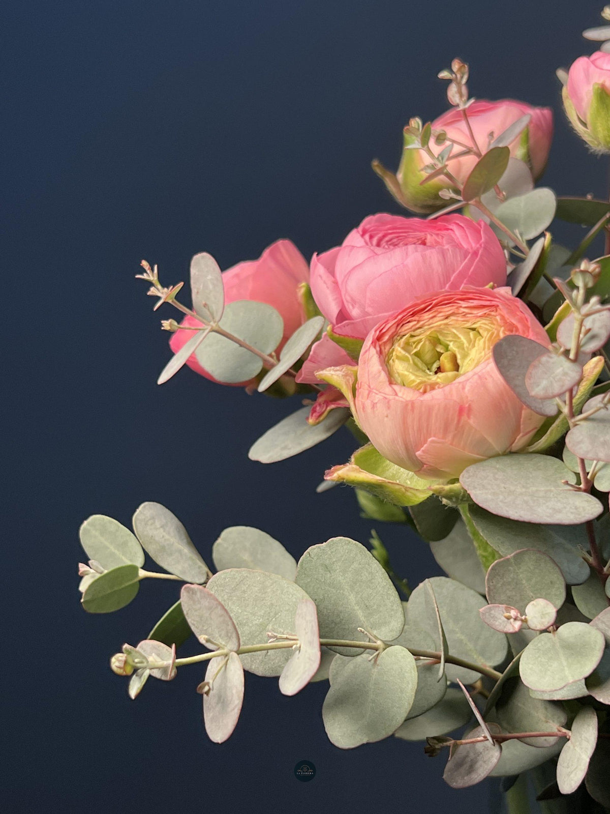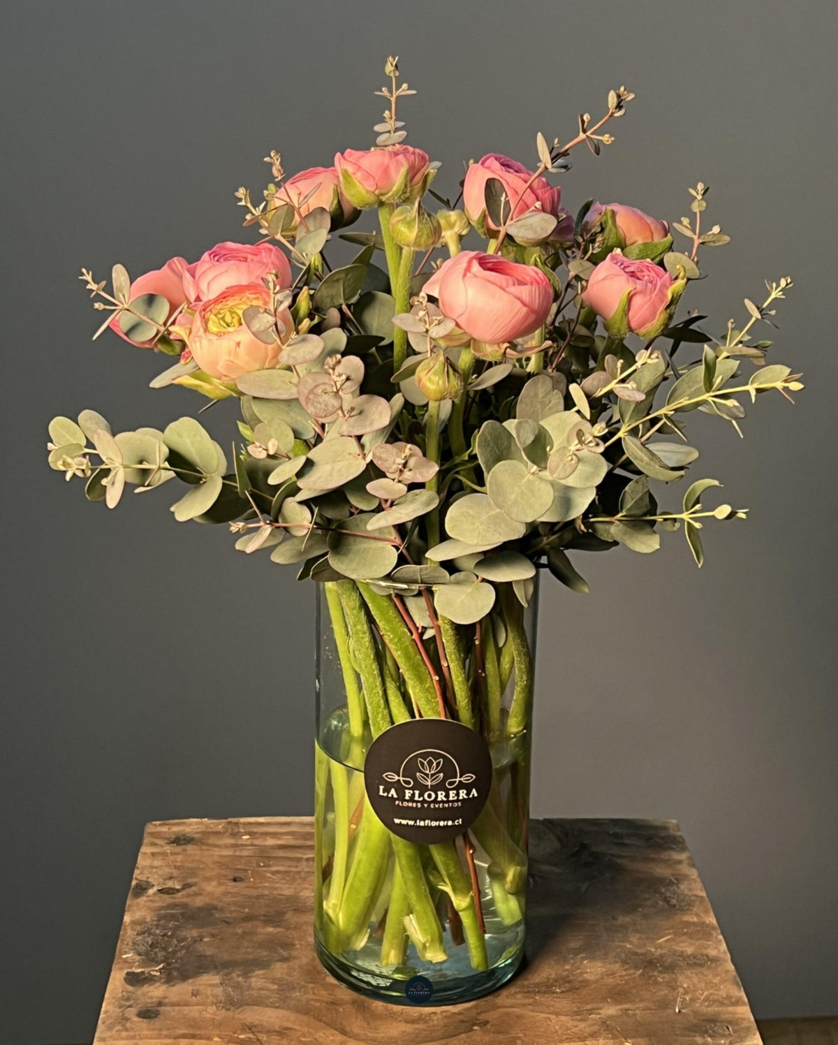 FLORERO 10 RANÚNCULOS Y EUCALIPTO
